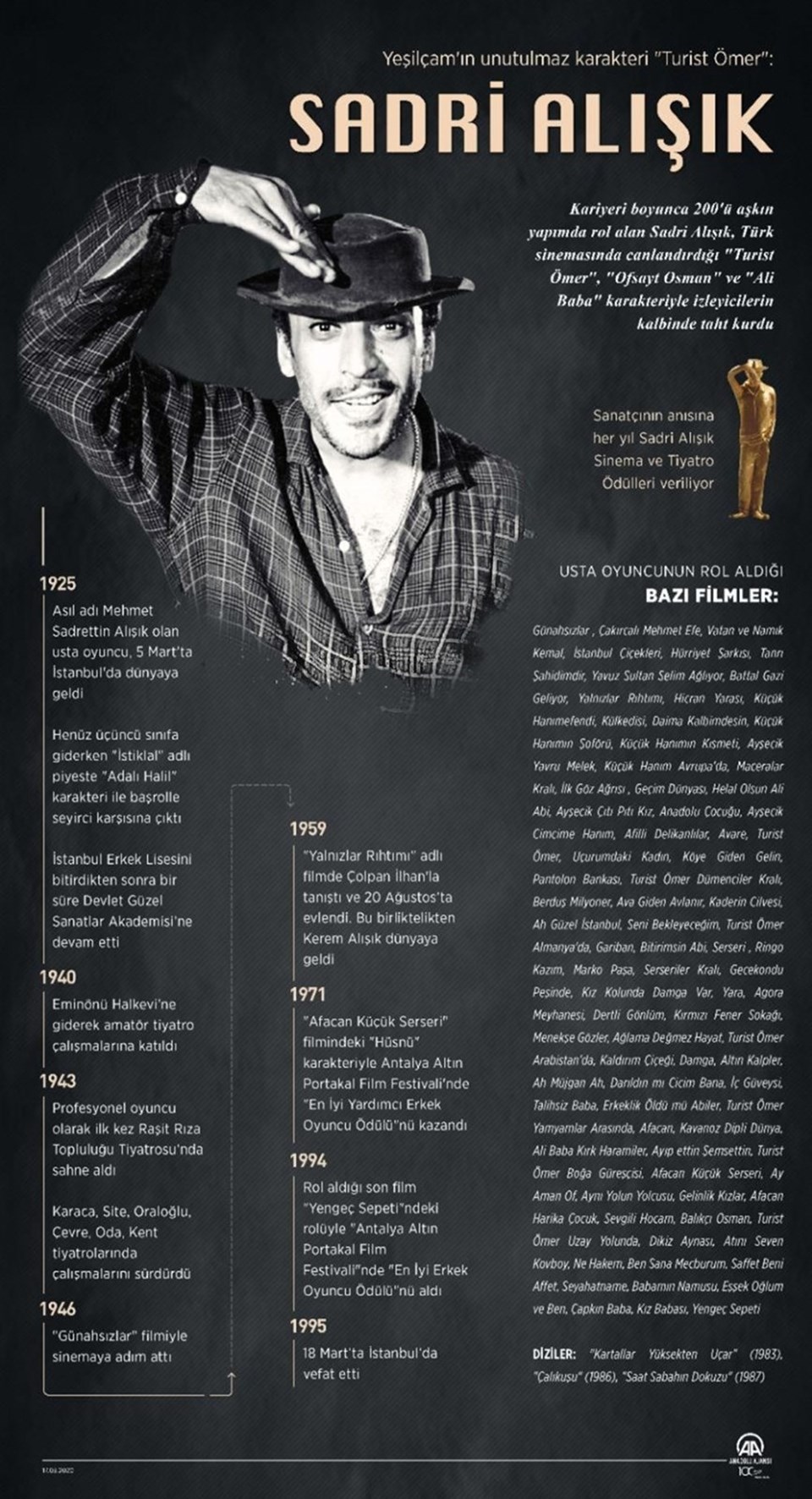 Usta oyuncu Alışık, dram rolleriyle başladığı oyunculuk kariyerini, canlandırdığı komedi karakterleriyle zirveye taşıdı.